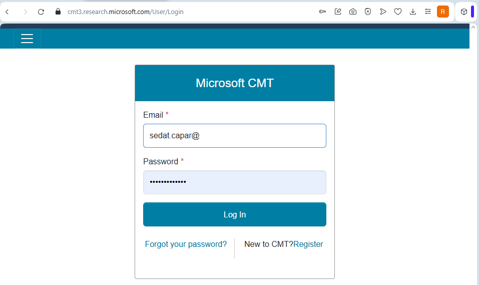 İlk olarak Miscrosoft CMT sitesinden içerisinde davet onayı linki bulunan bir e-posta alacaksınız. Lütfen `Click the link below to accept` yazısının altında bulunan linke tıklayınız. Eğer CMT üzerinde daha önceden kullanıcı hesabınız yoksa 2. adımı takip ederek hesap oluşturunuz. hesabınız varsa 5. adımdan devam edebilirsininiz.